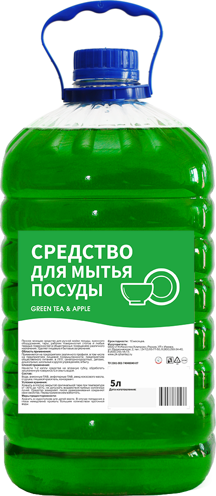 Средство жидкое для мытья посуды 5л эконом Green Tea and Apple Италмас 1/4 купить в Екатеринбурге по низкой цене оптом и дешево с доставкой