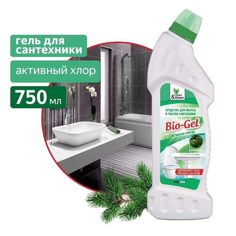 Средство жидкое 750мл чистящее гель для сантехники Bio-Gel Clean&Green 1/8 купить в Екатеринбурге по низкой цене оптом и дешево с доставкой