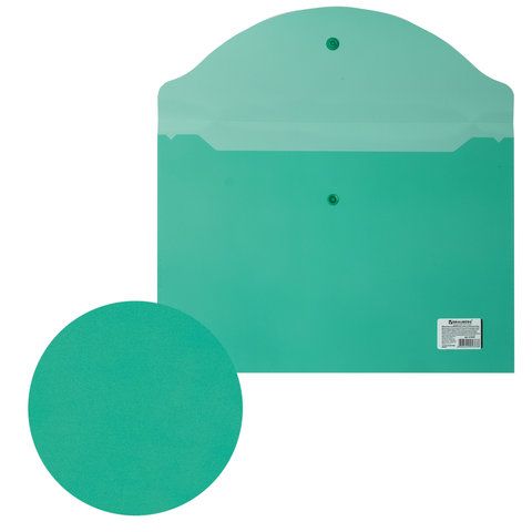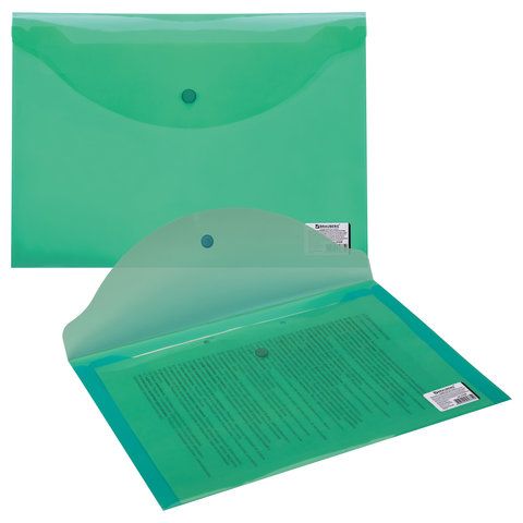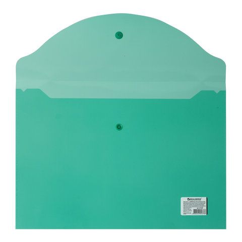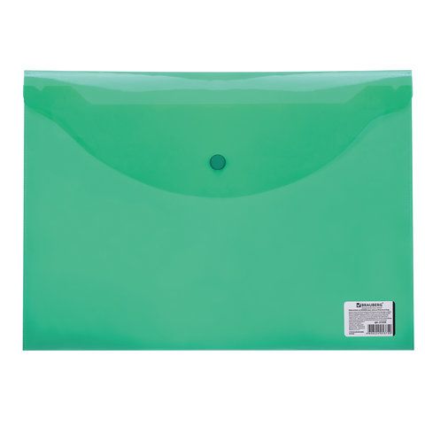 —Папка-конверт с кнопкой А4 BRAUBERG, прозрачная, зеленая, до 100 листов, 0,15мм 1/15/90
