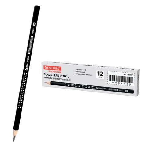 Карандаш ч/гр HB трехгранный, черный с рисунком, без резинки BRAUBERG Black&White 1/12/144 купить оптом и в розницу в Екатеринбурге