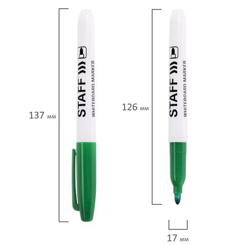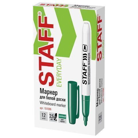 Маркер для доски зелёный 2,5мм тонкий корпус круглый наконечник STAFF 1/12 купить оптом и в розницу в Екатеринбурге