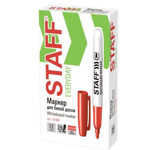 Маркер для доски красный 2,5мм тонкий корпус круглый наконечник STAFF 1/12 купить оптом и в розницу в Екатеринбурге