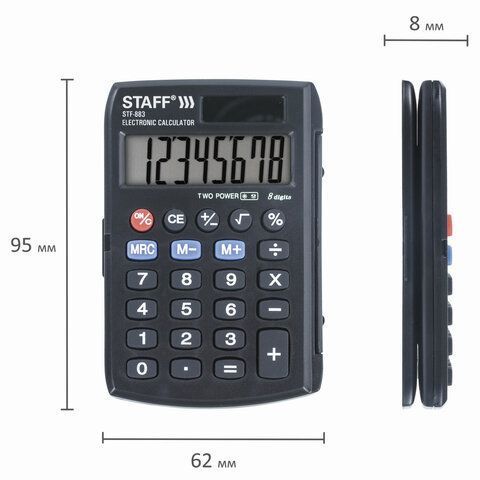 —Калькулятор карманный STAFF STF-883 (95х62 мм), 8 разрядов, двойное питание 1/50