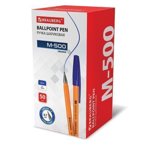 —Ручка шариковая синяя 0,7мм оранжевый корпус BRAUBERG M-500 ORANGE 1/50