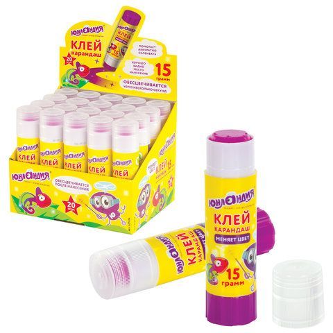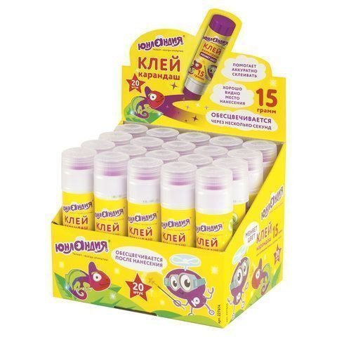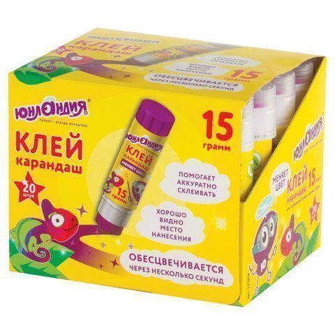 Клей-карандаш 15г обесцвечивающийся цветной ЮНЛАНДИЯ 1/20/480 купить оптом и в розницу в Екатеринбурге