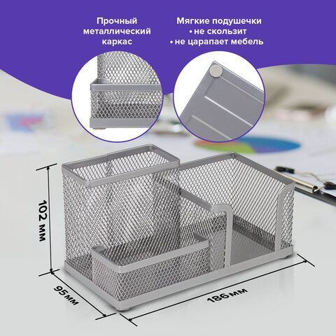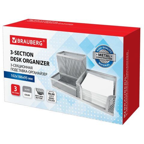 —Подставка-органайзер 102х186х95мм металлическая 3 секции серебр Germanium Brauberg 1/6/24