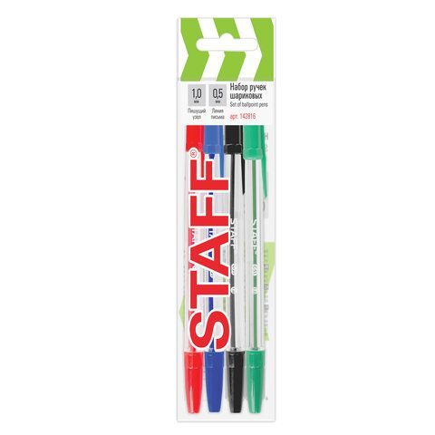 Набор шариковых ручек 4цв корпус прозр узел 1мм линия 0,5мм европодвес STAFF С-51 1/48 оптом и в розницу в Екатеринбурге купить