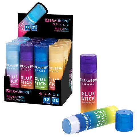 Клей-карандаш 21г BRAUBERG Grade PVP ассорти 1/12/648