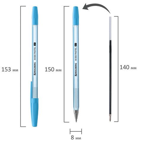 Ручка шариковая синяя узел 0,7мм корпус ассорти BRAUBERG M-500 PASTEL 1/50 купить оптом и в розницу в Екатеринбурге