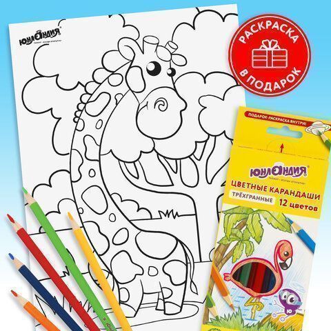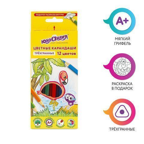 Карандаши цветные 12цв трехгранные с РАСКРАСКОЙ СУПЕРМЯГКИЕ ЮНЛАНДИЯ ТРОПИКИ (вывод)