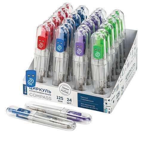 Циркуль 125мм для средних классов GLOBUS металлический, цвет ассорти, чехол ПВХ 1/24/48 купить оптом и в розницу в Екатеринбурге