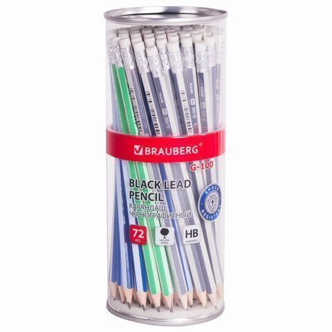 Карандаш ч/гр НВ с ластиком дерево корпус ассорти G-100 BRAUBERG 1/72 купить оптом и в розницу в Екатеринбурге