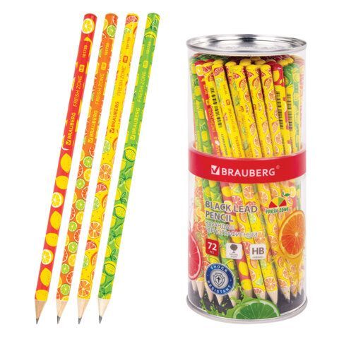 Карандаш ч/гр НВ дерево корпус ассорти FRESH ZONE BRAUBERG 1/72 купить оптом и в розницу в Екатеринбурге