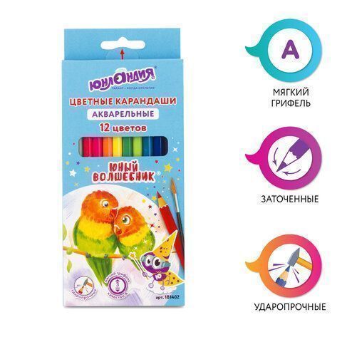 —Карандаши цветные 12цв акварельные шестигранные ЮНЛАНДИЯ Юный Волшебник 1/12