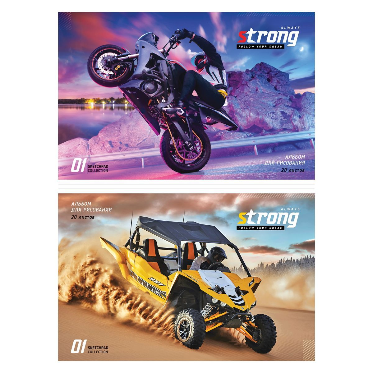 Альбом для рисования 20л А4 на скрепке эконом ArtSpace Авто Гонки 1/10/80