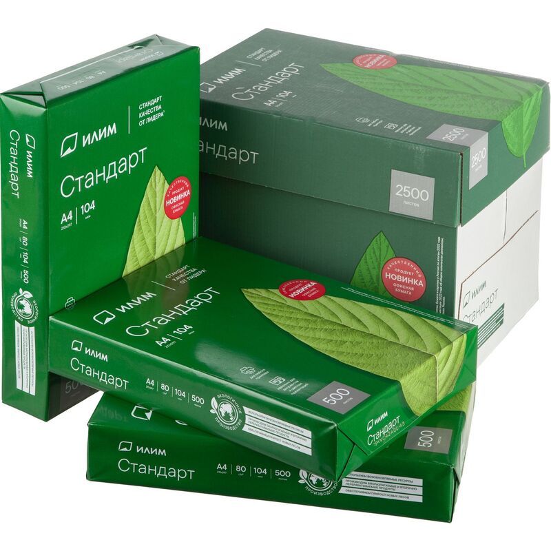 Бумага А4 500л 80г/м2 офисная белизна 146% белая Илим Стандарт 1/5 купить оптом и в розницу в Екатеринбурге