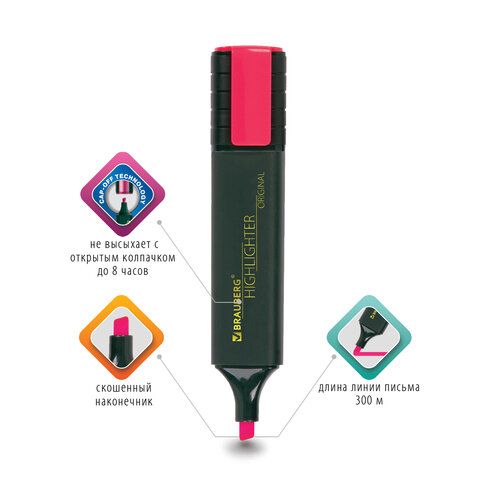 Текстмаркер розовый 1-5 мм скошенный наконечник BRAUBERG ORIGINAL 1/12/576 купить оптом и в розницу в Екатеринбурге