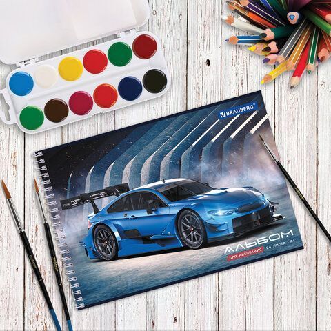 Альбом для рисования 24л А4 гребень обложка картон BRAUBERG Спорткар 1/10/40 купить оптом и в розницу в Екатеринбурге