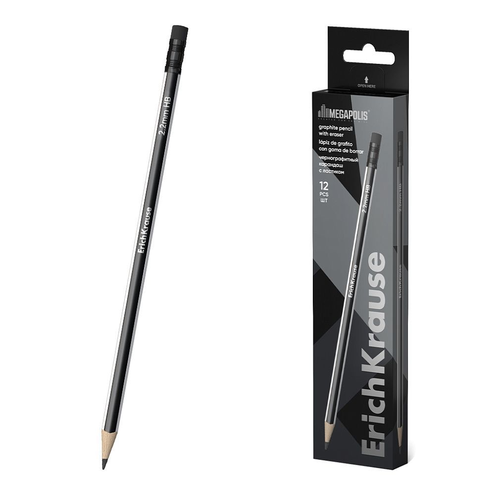 Карандаш ч/гр HB пластик с ластиком ErichKrause MEGAPOLIS 1/12 купить оптом и в розницу в Екатеринбурге