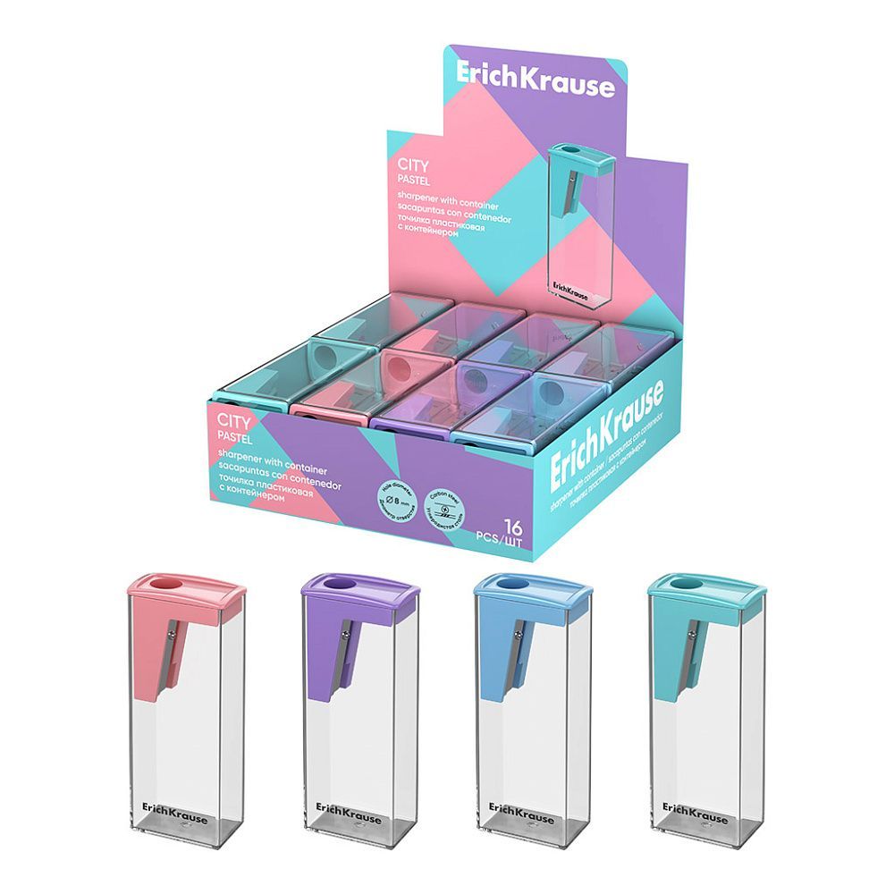 Точилка 1 отверстие ассорти ErichKrause City Pastel 1/16 купить оптом и в розницу в Екатеринбурге