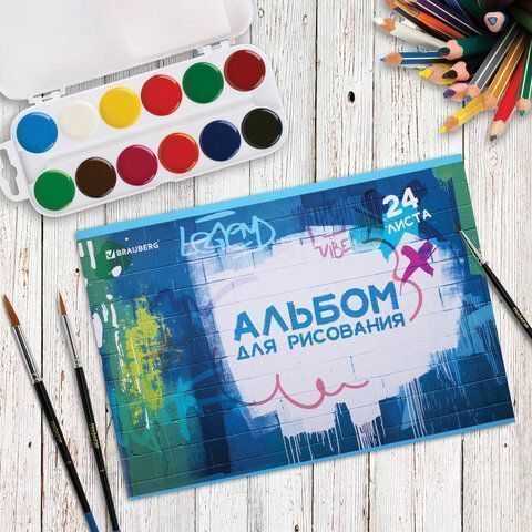 Альбом для рисования 24л А4 скоба Граффити BRAUBERG 1/7/70 купить оптом и в розницу в Екатеринбурге