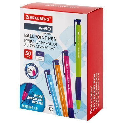 —Ручка шариковая автомат синяя узел 0,5мм BRAUBERG A-30 COLOR MIX 1/50