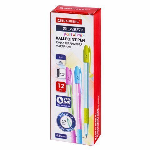 Ручка шариковая синяя масляная ассорти BRAUBERG GLASSY 1/12 купить оптом и в розницу в Екатеринбурге