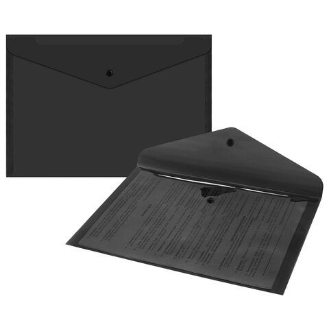 Папка-конверт А4 с кнопкой до 100л черная BRAUBERG 1/12