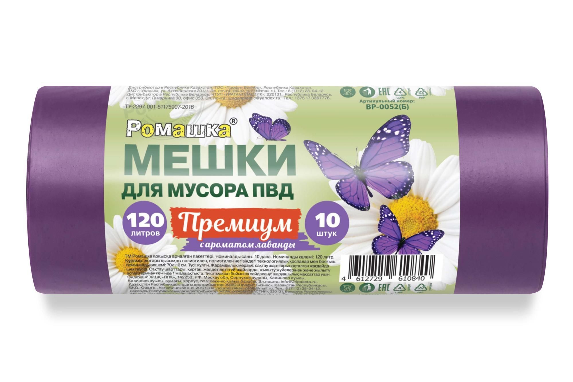Мешок для мусора 120л рулон ПВД (70х110)-35 фиолетовый (лаванда) ПРЕМИУМ 50г Ромашка (10шт) 1/12 купить в Екатеринбурге с доставкой оптом и в розницу