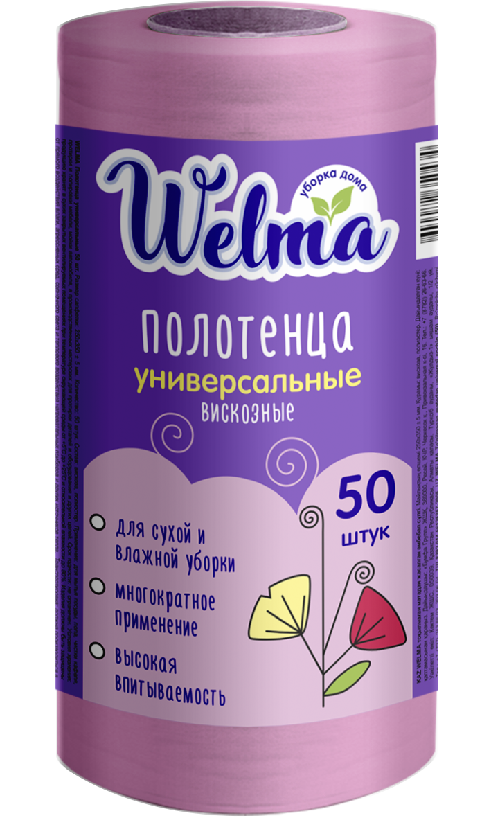 Салфетки вискозные рулон (25х35) WELMA универсальные розовые (50шт) 1/12 купить в Екатеринбурге с доставкой оптом и в розницу