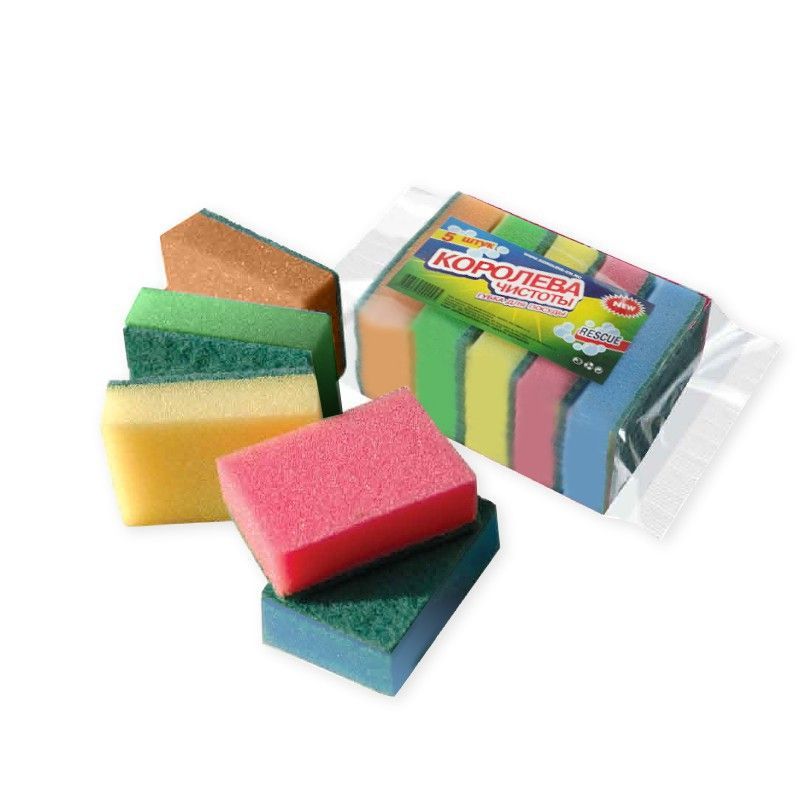 Губка для посуды макси (5шт) 120х90х30мм МегаМакс Королева Чистоты 1/35 купить в Екатеринбурге с доставкой оптом и в розницу