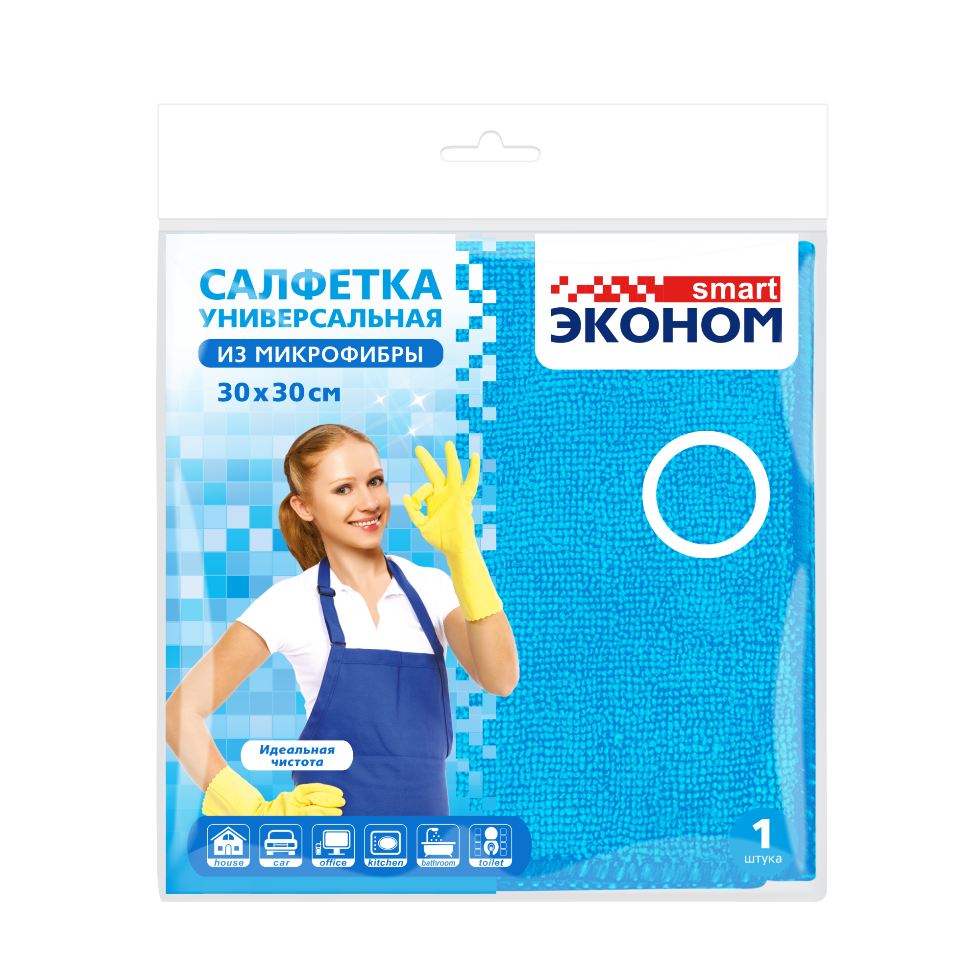 Салфетка микрофибра (30х30) универсальная в индивид,упаковке ассорти Эконом Smart 1/60 купить в Екатеринбурге с доставкой оптом и в розницу