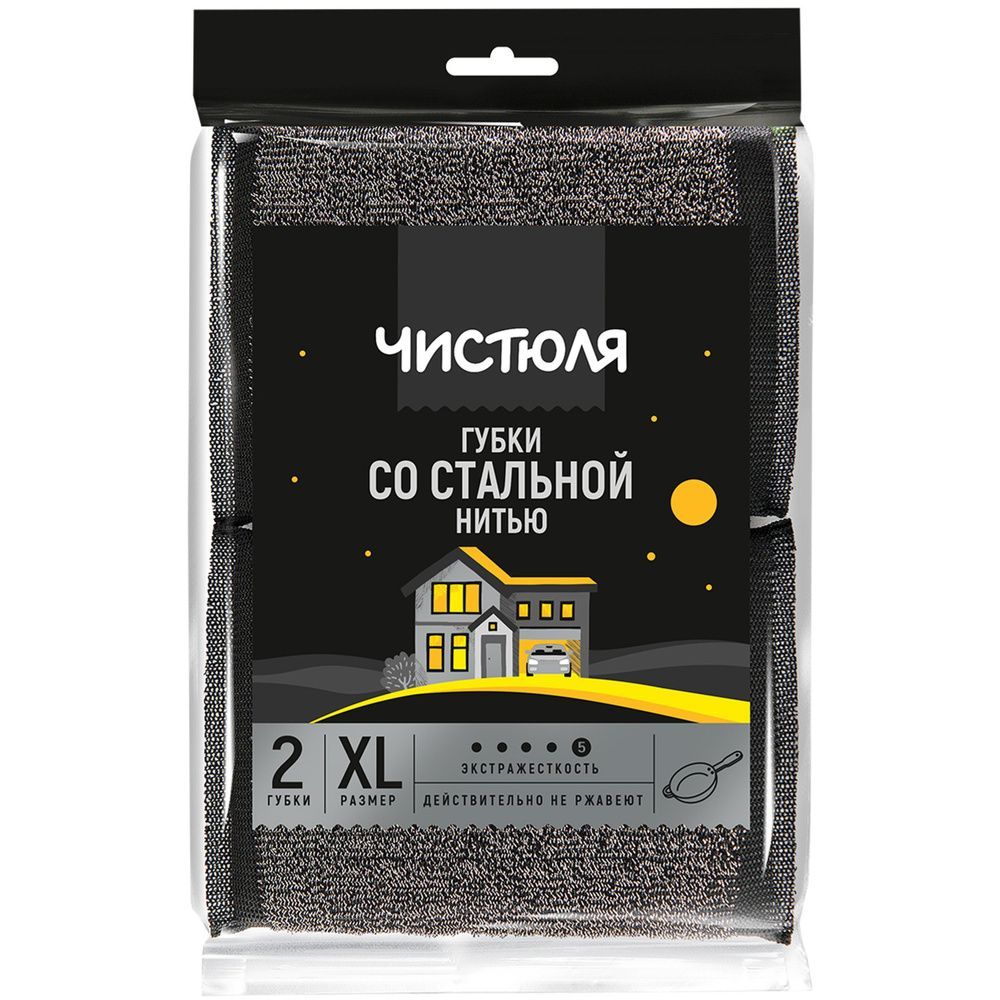 Губка бытовая (2шт) 120х90х15мм со стальной нитью Чистюля 1/33 купить в Екатеринбурге с доставкой оптом и в розницу