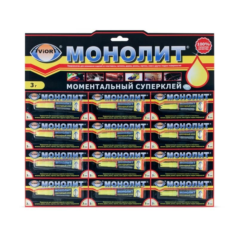 Суперклей 3гр Монолит блистер-карта 12/288 купить в Екатеринбурге с доставкой оптом и в розницу