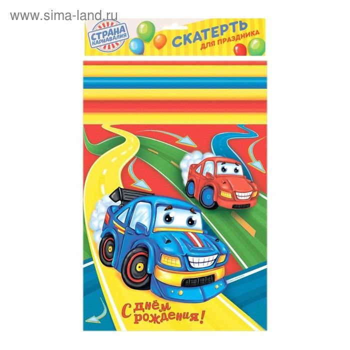 Скатерть нетканный материал 130х180см С Днем рождения! Тачки 1/250 купить в Екатеринбурге с доставкой оптом и в розницу