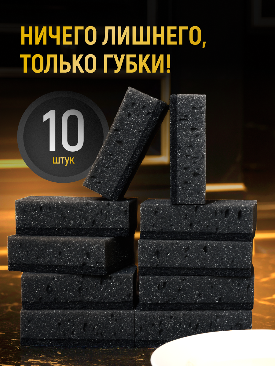 Губка для посуды (10шт) 98х66х30мм черная СТМ 1/30 купить в Екатеринбурге с доставкой оптом и в розницу