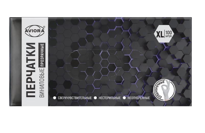 Перчатки смотровые виниловые неопудренные Aviora XL 4,5гр 50/500 купить оптом и в розницу в Екатеринбурге с доставкой