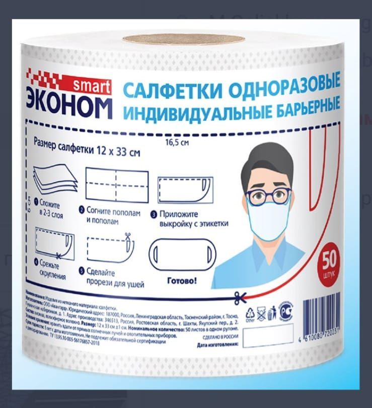 Салфетка одноразовая индивид барьерная 12х33 спанлейс 40г/м2 № 50 рулон Эконом Smart 1/24 купить оптом и в розницу в Екатеринбурге с доставкой