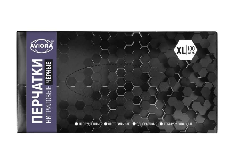 Перчатки смотровые нитриловые неопудренные Aviora черные XL 4 гр 50/500 купить оптом и в розницу в Екатеринбурге с доставкой