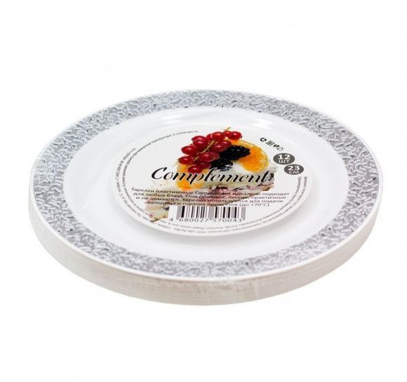 Тарелка пластиковая d-230 белая с серебряной ажурной каймой Compliment ламинированная (12шт) 1/20 купить в Екатеринбурге с доставкой - УПАК.РФ