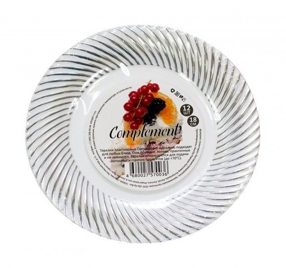 Тарелка пластиковая d-180 белая с серебряной волной Complement ламинированная (12шт) 1/20 купить в Екатеринбурге с доставкой - УПАК.РФ