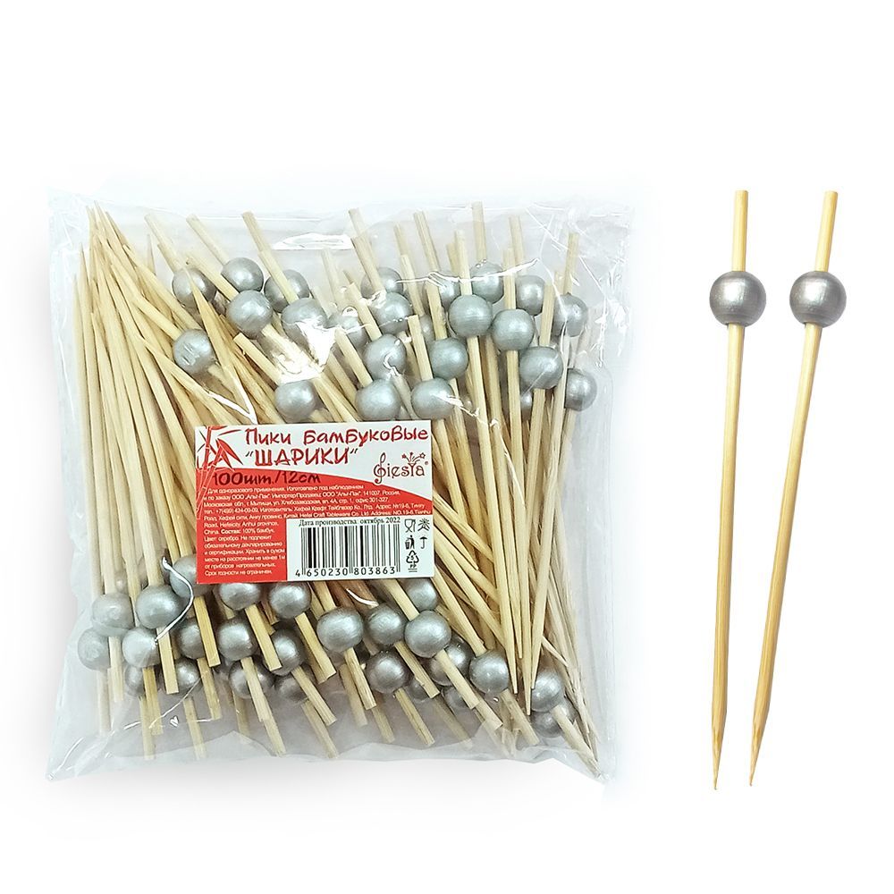 Пика для канапе Шарики серебро 12см (100шт) 1/50 купить в Екатеринбурге с доставкой - УПАК.РФ