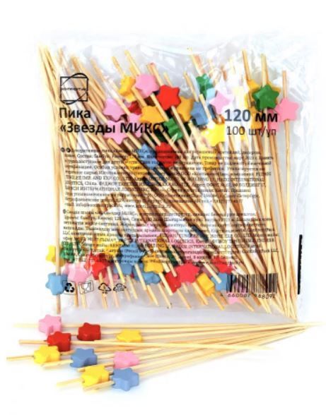 Пика для канапе Звезды микс (100шт) 1/40 купить в Екатеринбурге с доставкой - УПАК.РФ
