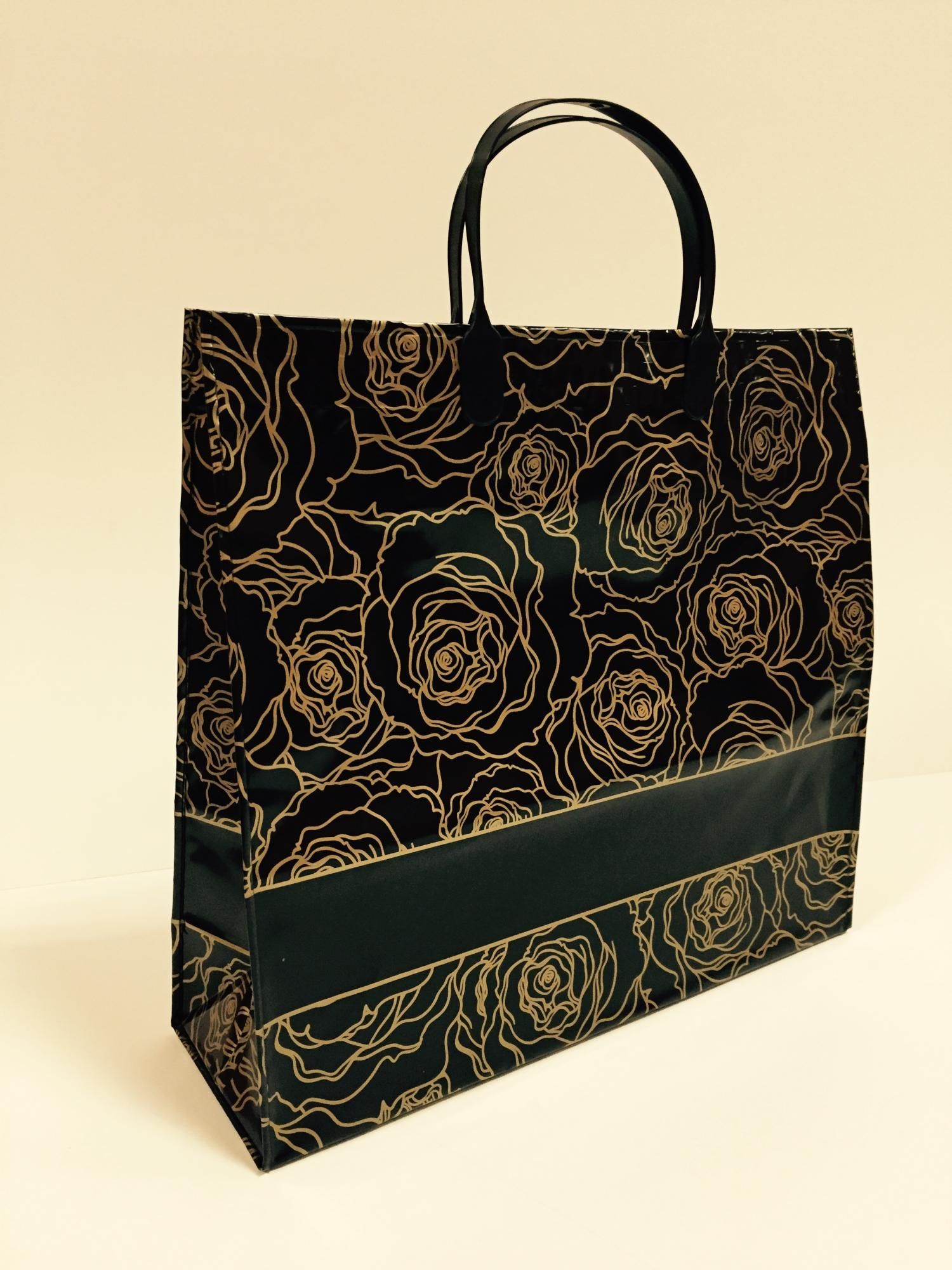 Пакет с пластмассовыми ручками (33х30+10) Золотые розы средн 10/50 купить в Екатеринбурге с доставкой оптом и в розницу