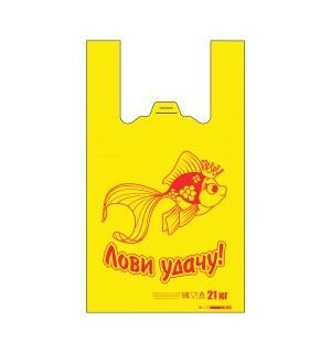 Купить упаковочные Пакет Майка ПНД (26+14)х48-12 желтый Лови удачу ЭТ 100/2000 оптом и в розницу в Екатеринбурге – низкие цены в каталоге