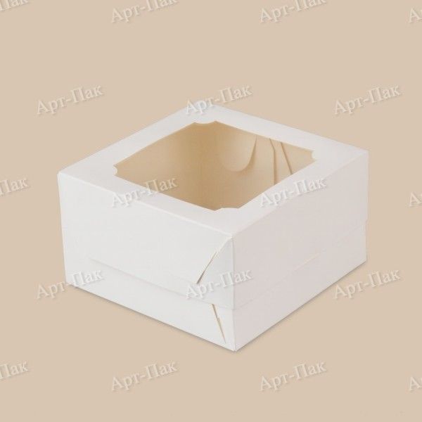Коробка для бенто торта с окном 160х160х80мм картонная белая 50/150 купить оптом и розницу с доставкой в Екатеринбурге