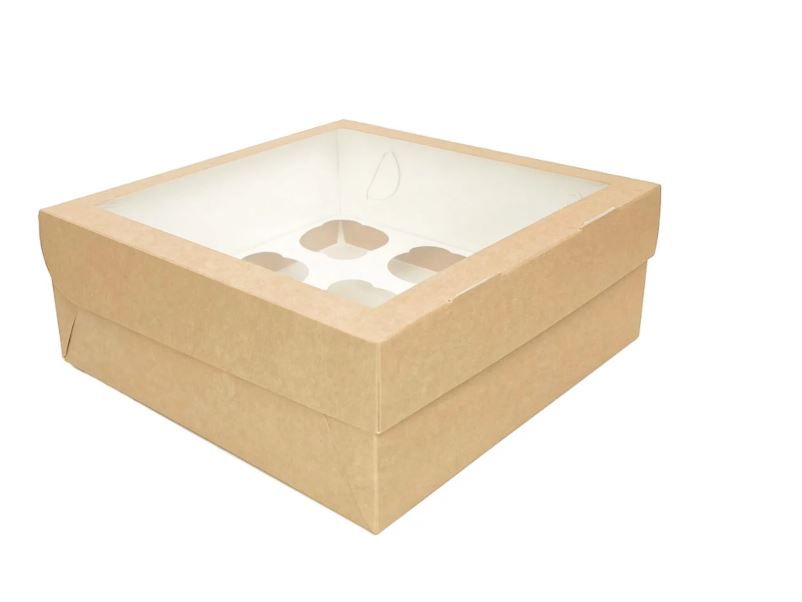 Коробка для капкейков/маффинов с окном 250х250х100мм на 9шт картон ECO MUF 9 DoECO 25/100 купить оптом и розницу с доставкой в Екатеринбурге