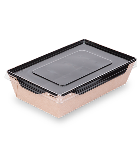 Контейнер бумажный 800мл 209х127х55мм крафт внутри черн ламин OSQ OpSalad BE (крышка 460092) 50/400 купить оптом и розницу с доставкой в Екатеринбурге