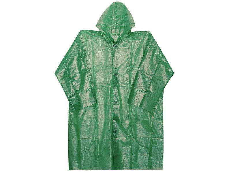 Плащ-дождевик с рукавами и капюшоном на липучке зеленый ПВД 70 мкм 1/50