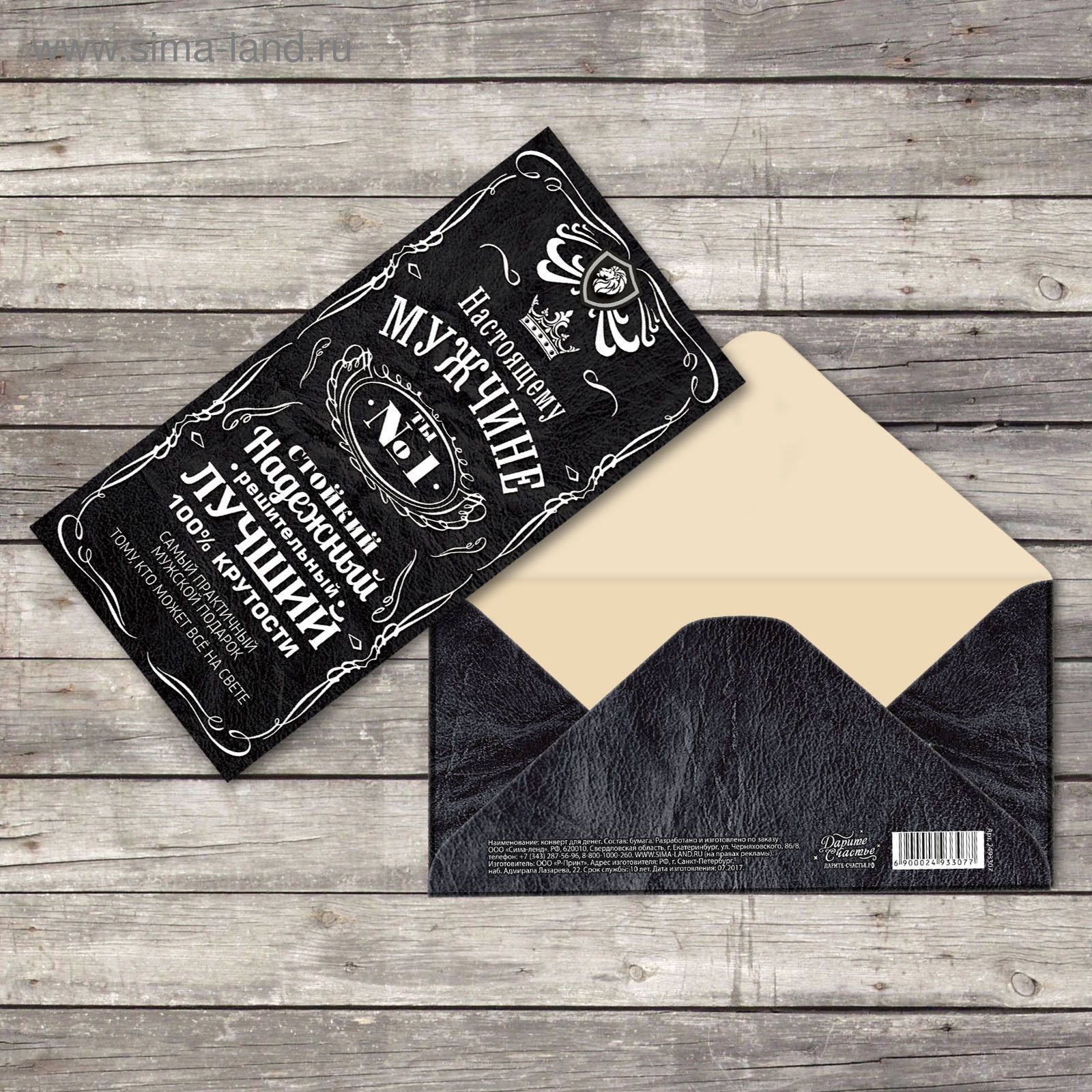 Конверт для денег 16,5х8см Настоящему мужчине 10/10 оптом и в розницу в Екатеринбурге, цены в каталоге с доставкой